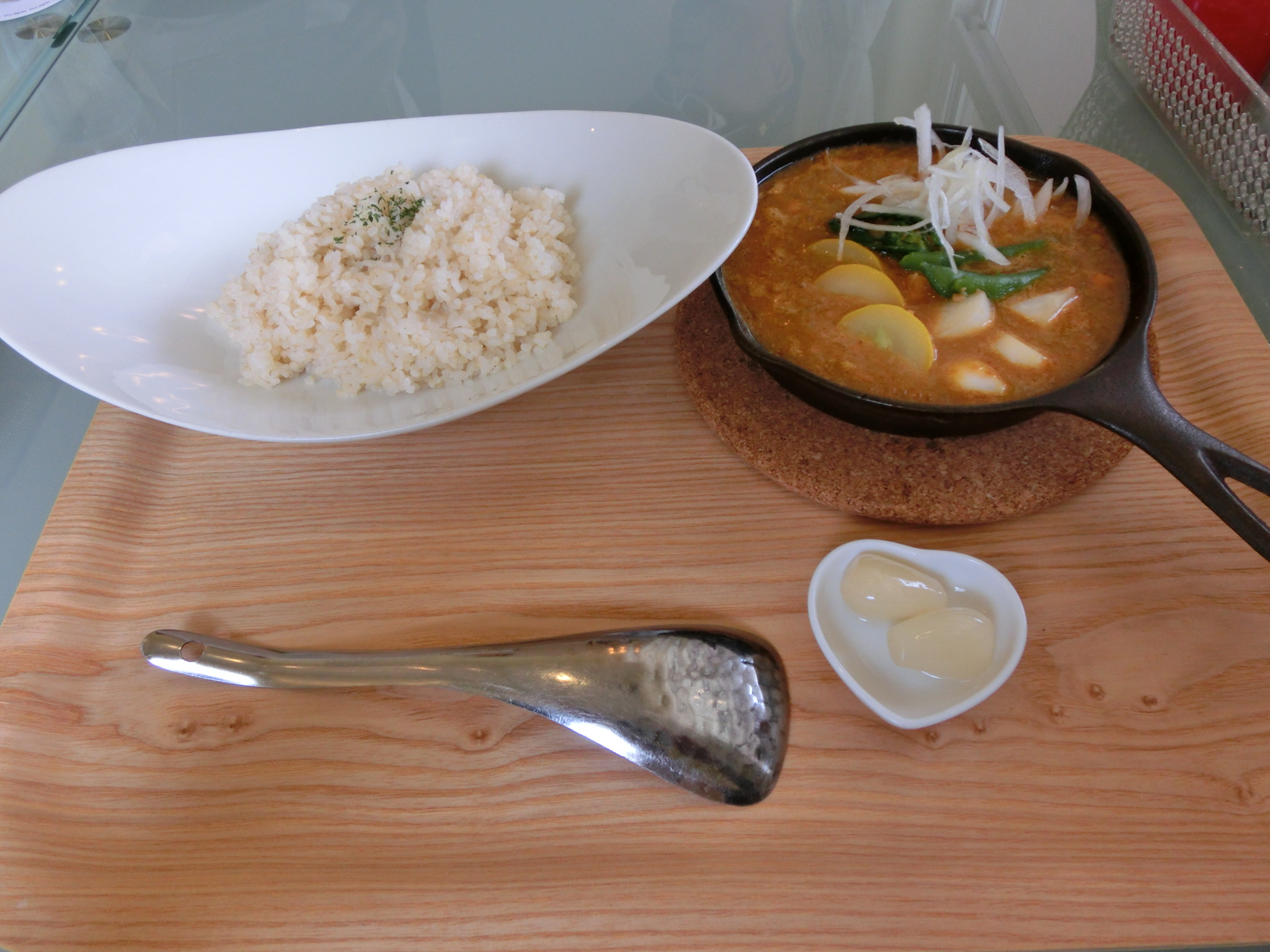 オーガニック野菜を使った薬膳カレーと牛肉キーマカレーを注文。